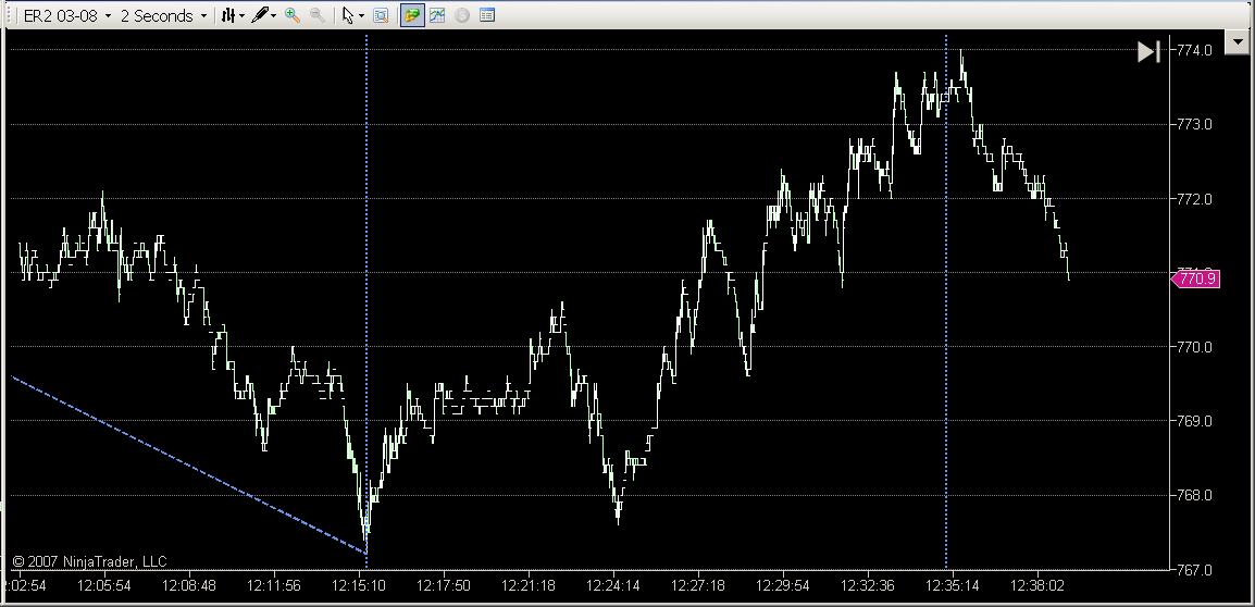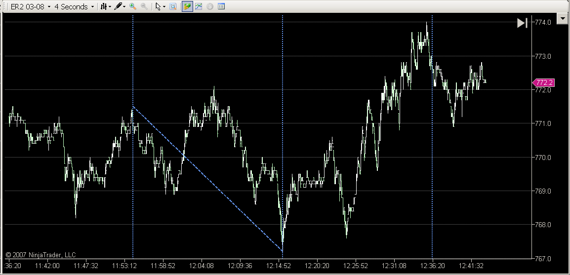 I carefully set up a fibonacci time extension tool on similar points in a 2 second chart and a 4 second chart (screen shots attached below)...I was careful to have them exactly on the same pivot points....however the results at the 200% and 300% cycle lines are landing at noticeably different spots on their respective charts....on the 2 second chart the 200% line meets close to a pivot point, but on the 4 second chart the 200% line is not close to a similar pivot...similarly the 300% lines do not jive on similar chart points either...what could be going on here ??