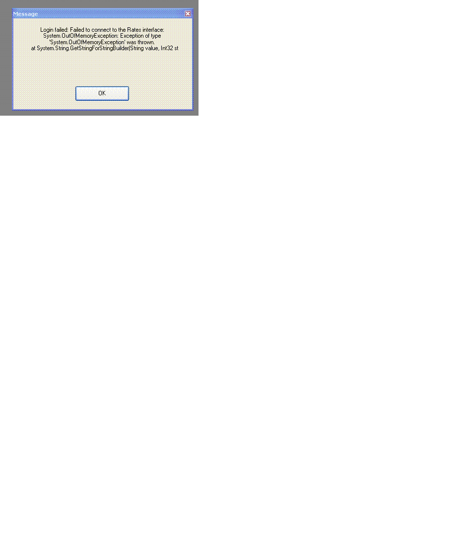 Login failed: Failed to connect to the Rates interface: