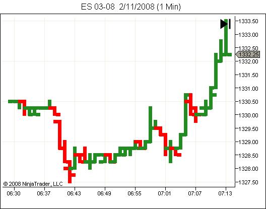 2. I am using OpenTick for the datafeed, and yet the bars appear different on the NinjaTrader using 2 Range and Ensign using 50 range. (These are equivalent, as NT uses #of tics, and Ensign uses number of points divided by 100.) Again, see charts.