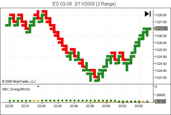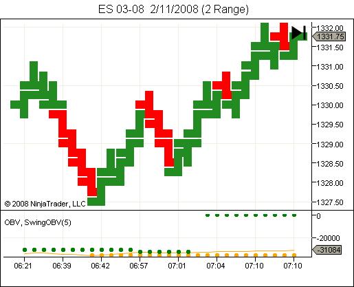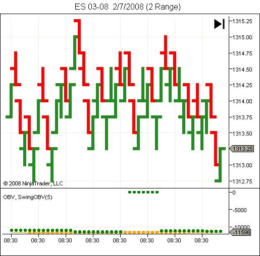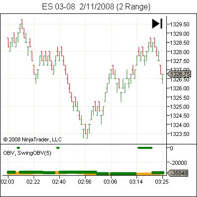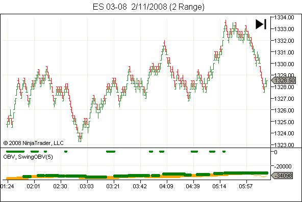 Also, when do a Swing calculation for the OBV (Panel 2), there are spots where the plot reverts to zero (the initial assignment).