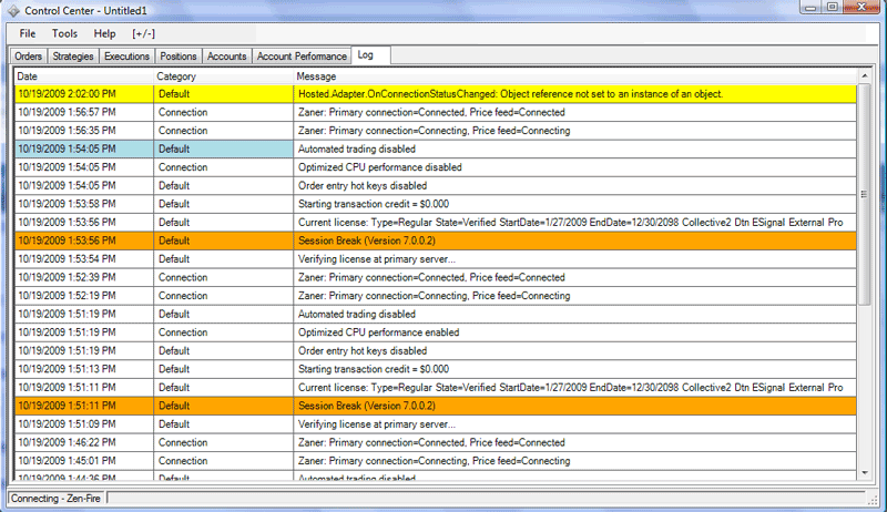 the log suggests that i was connected in less than a minute; however, the status in the lower-left constantly says "connecting..." and never turns green showing that i am connected.