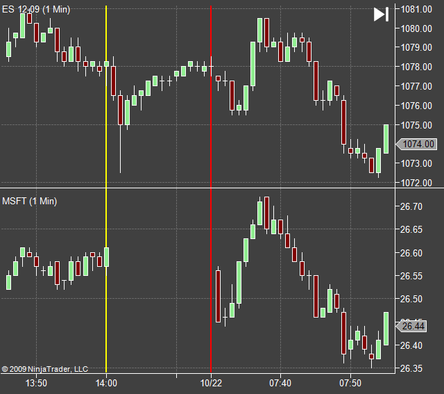 This is correct and expected. We changed this from the 1st bar of the session. In multi-series charts they are located at the actual time. I don't recall the reasoning for the change except that it had to be done.Originally posted by hemlock View PostIt appears the session break lines are being drawn on the prior bar. IB is the data feed.RayNinjaTrader Customer Service