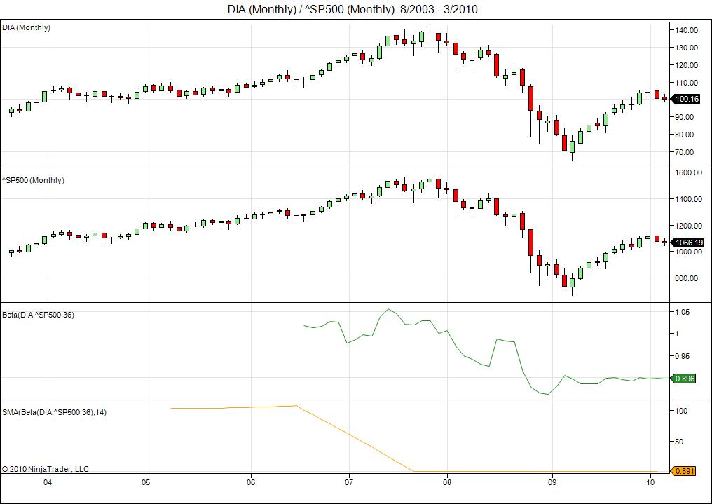 This is a major design flaw in NT7, an incredibly bad mistake. [see attached chart] If you take, say, a 14-period SMA of a 36-period beta (say DIA vs ^SP500), what will display is: 19 bars of no output; 16 periods of the SMA of DIA (roughly 100), then 13 periods of an SMA which is a mixture of the Close of DIA and the output of Beta (100 declining down to 1) then finally the SMA of the Beta indicator output.