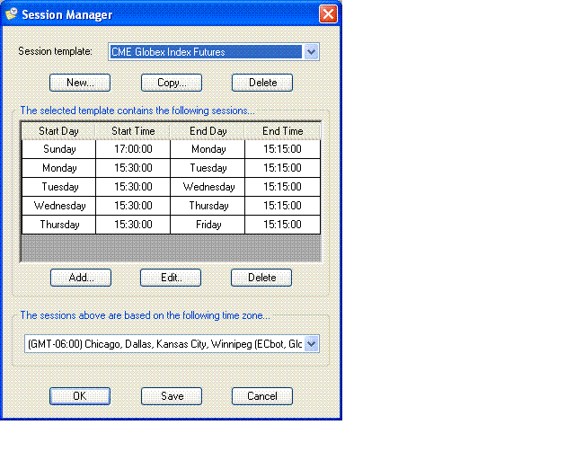 For index futures I am using a session template that reflects the electronic Globex session. All index futures are preset to this template at instrument level.
