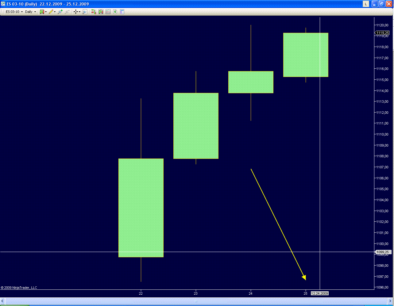 - load a 1-Day chart for ES 03-10 just 5 days back, rest default