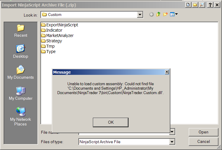 7B6 Import NinjaScript Error Messages