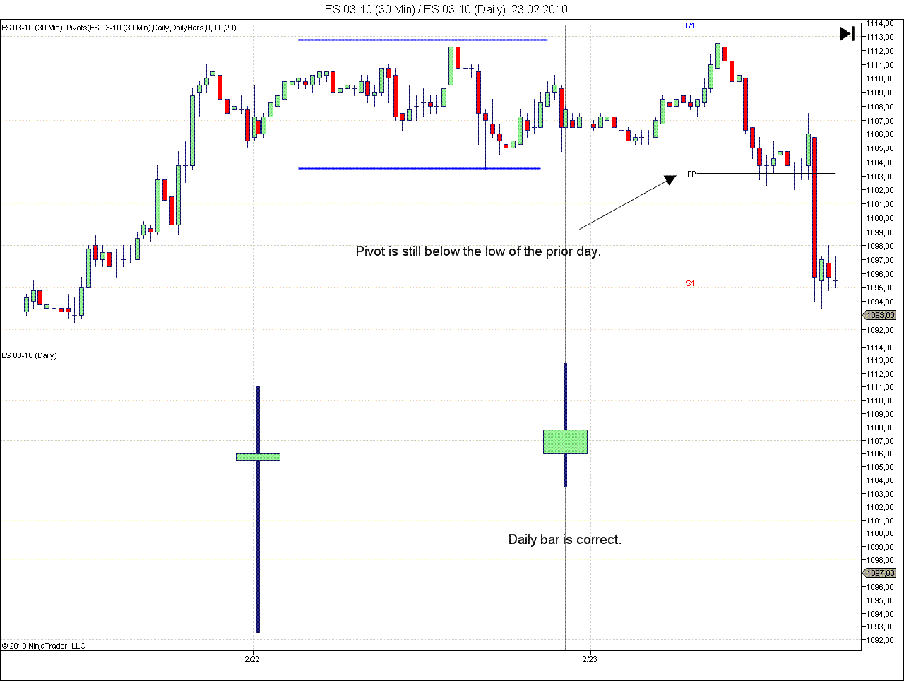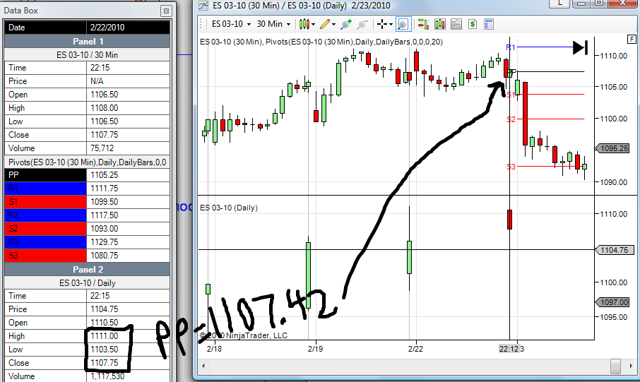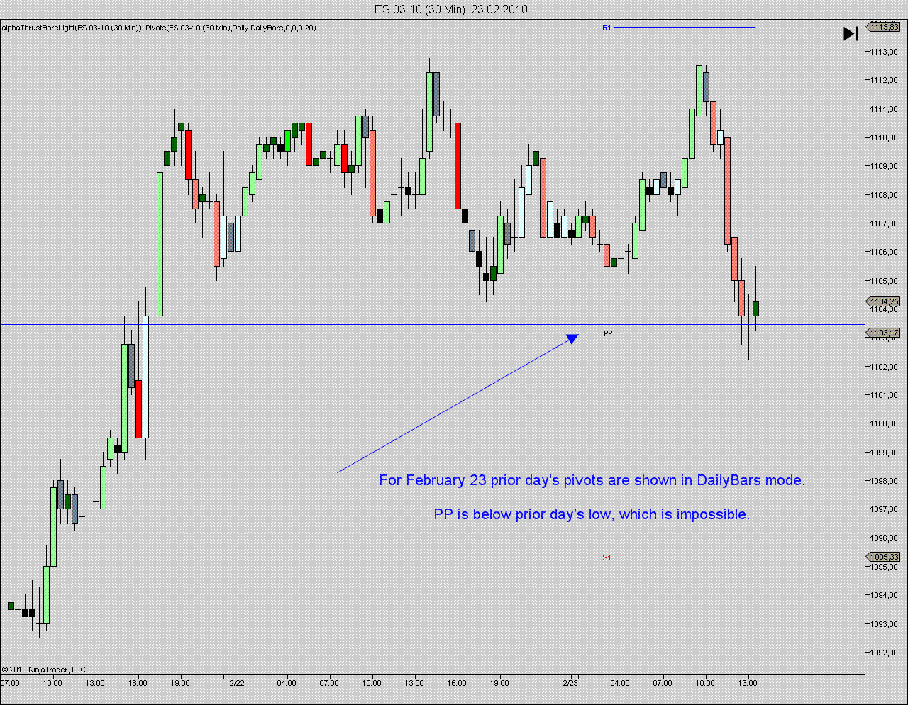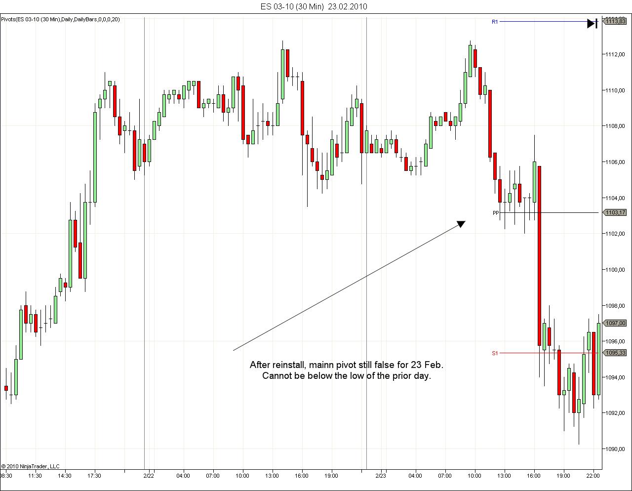 For all Tuesdays and most of the Wednesdays in January and February the pivots indicator displayed false values. Example see below.