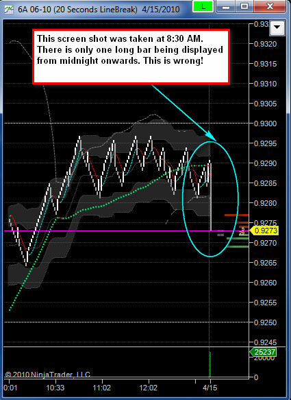Guys, LineBreak charts still do not work properly across session boundaries, as discussed in this thread. Please read my last post prior to this one, and decide what you are going to do about it. You can't include a chart type that doesn't work, and right now, LineBreak charts do not work. All you have done so far is give reasons for why you are starting a new bar after a session boundary, but you have not acknowledged that this is a problem with LineBreak charts because of how they are constructed. One way or another, you need to fix this because it is a bug, you can't just leave it the way that it is. See attachedLast edited by JS999; 04-15-2010, 06:43 AM.