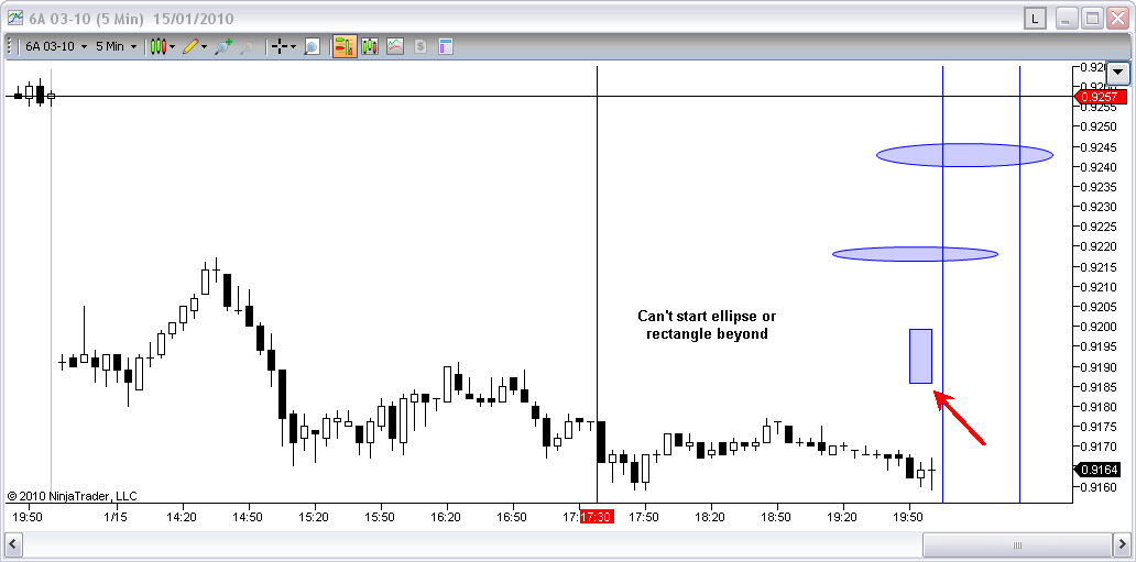 if you try and draw an ellipse / rectangle to the right of the current bar it will not work - however if you draw it to the left you can drag it into the right margin?