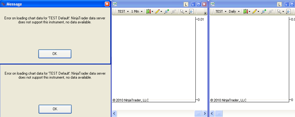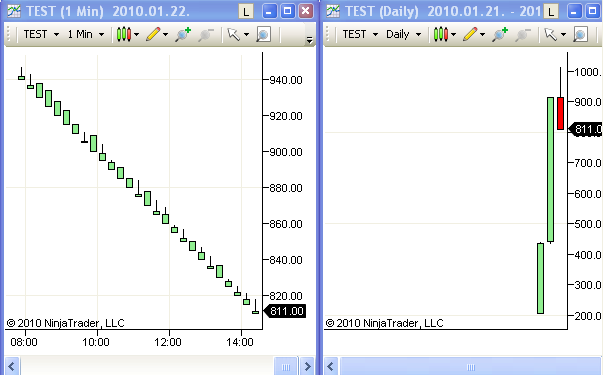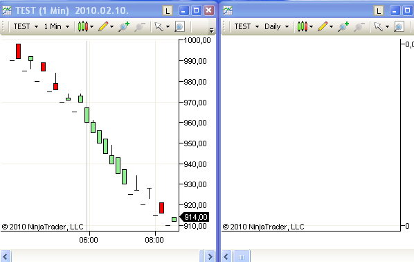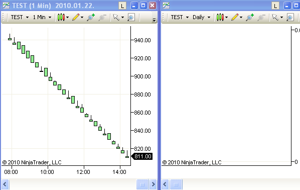 ninja restarted : minutes chart shows data , no daily charts