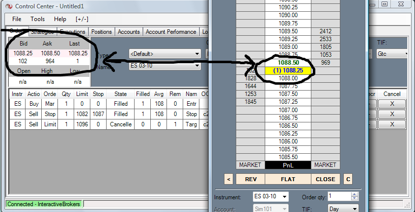 However, the price ladder on the DOM is off by one or two pips/ticks.