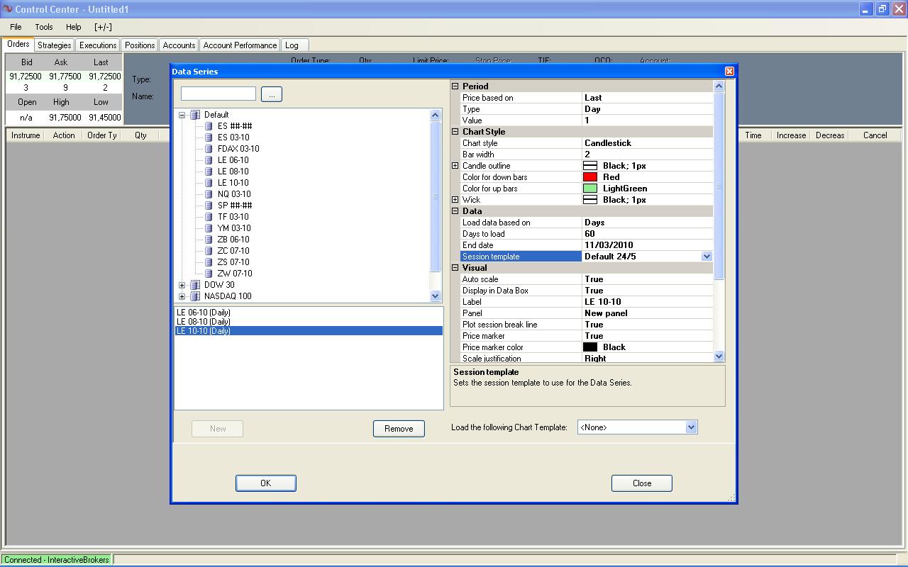 When adding I change the session template to 24/5, but When the chart displays data, the historical data is the same for all instruments.