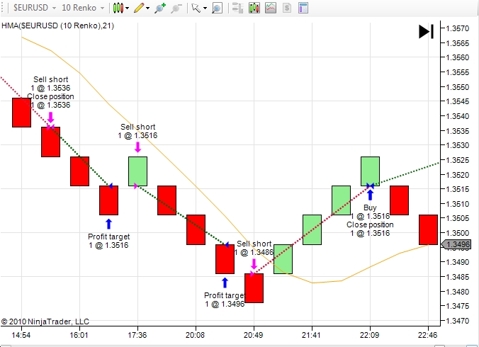 Sell short at 17.36pm enters at the beginning of the next bar, which is price 1.3516. However as the close and end get drawn at the same time,this bar would not appear until price had hit 1.3526. The real entry price then would be 1.3526.