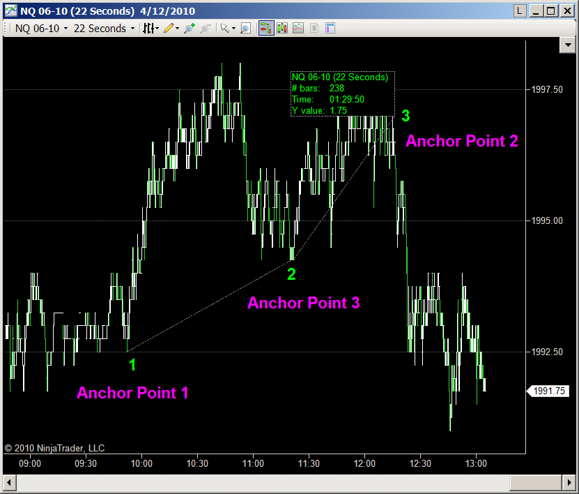 What about the option of inserting a dummy close in any "empty" bar space equal to the last previous close if there is no actual data that falls within that time slot ??.... That way the ruler could measure time & bars correctly as all bars would then be measurable...and also.... when plotting into the future with code perhaps one could then reference just the number of bars desired from a known start point for any object. Also...one would not need to use absolute bars to set the horizontal scale of any chart if one could measure all bar spaces accurately...this could perhaps fix the current odd problems in scaling charts horizontally in Ninja....