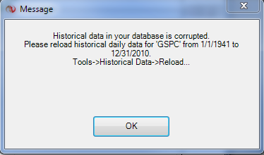 Then, I closed and recreated another chart this time trying to show 25000 days of daily data (back a bit farther then Yahoo actually supplies). NT7 reported database corruption as attached. [It would be helpful if the text in this type of error message was copyable to the clipboard.]