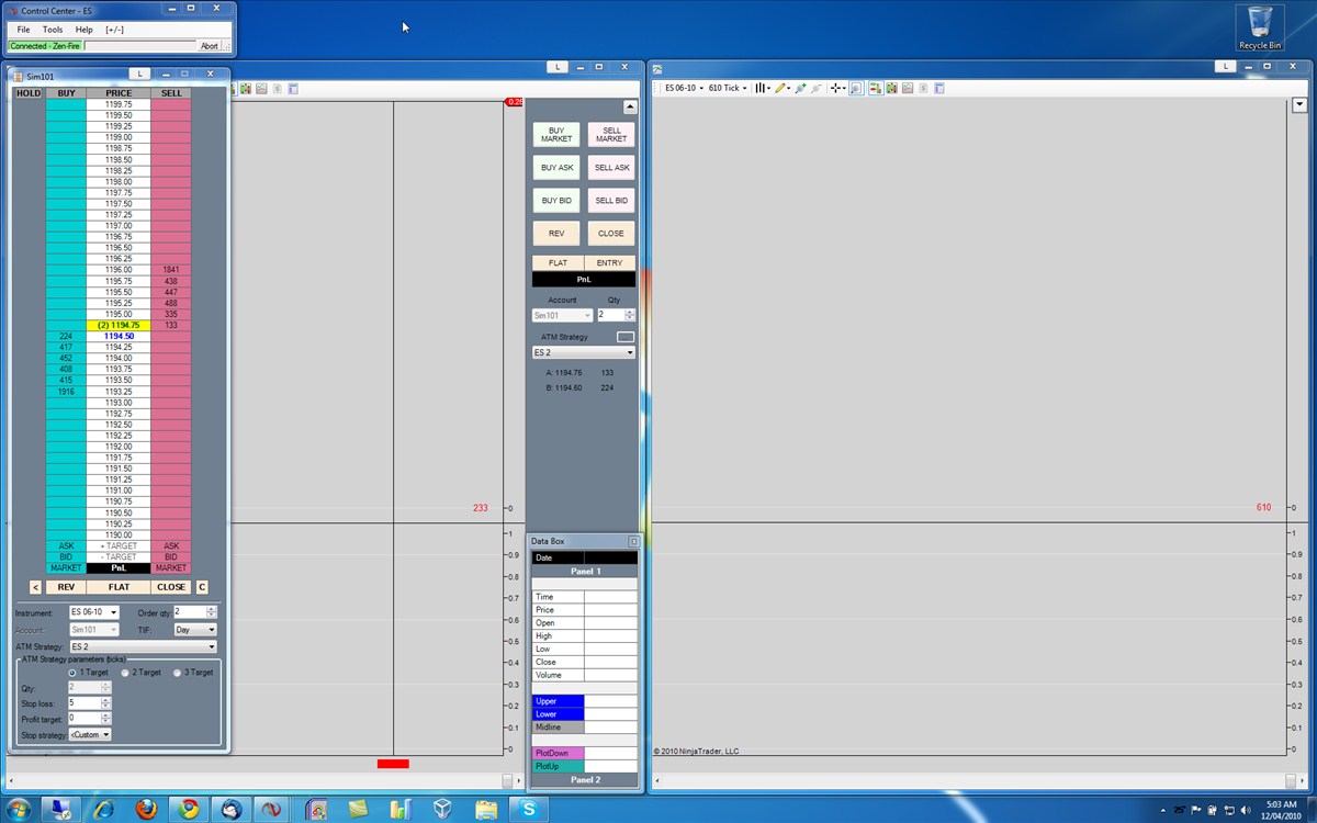 In fact connecting to zenfire with a blank chart to reload historical data, disconnecting, and then opening a chart also works fine. But if I then connect to zenfire the charts all go blank, and stay that way even when the control center says all data is loaded. Funnily enough the superdom shows the live ticks coming through, but the charts stay blank. No session or instrument settings have been changed since it was working fine on Friday