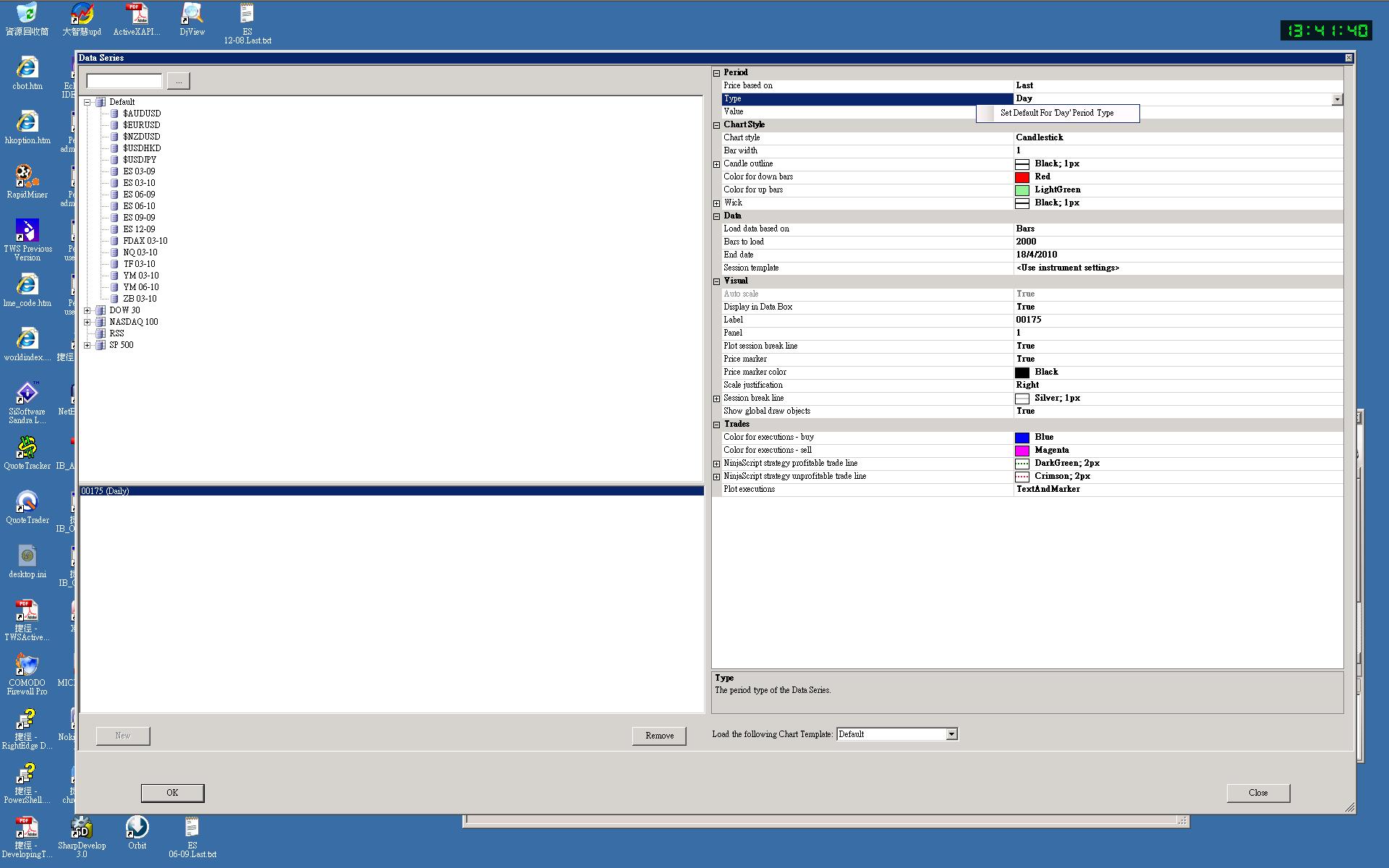 Attached is the screen which show changing the chart setting to 'Day' period (but ninjatrader won't saved the settings)