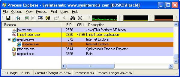 The workspace has three charts, 1 min, 5 min and 30 min (no tick charts!) with a lookback period of 65 days each. All three charts use identical chart templates (for simplicity reasons) and the three charts, DOM and control center are displayed via 2 monitors. The charts have pivots, but these are on purpose set to CalcFromIntradayData not to create any supplementary difficulties with the separate system threading.