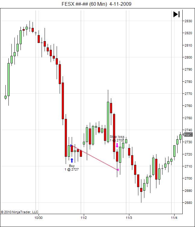 2. Changed in the code the point at which the stoploss goes to breakeven from 50 points to 10 points (otherwise it would be hard to spot; notice I didn't change anything else).
