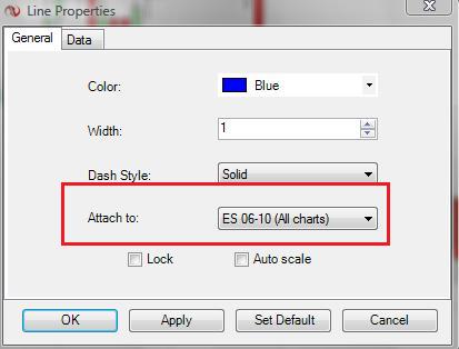 2) When I select "Attach to ALL charts" option and click on "Set Default" button, I assume this option applies to all other lines as well as all other chart. But whenever I draw another line on either the same chart or on a different chart of the same data series, why do I need to select this option again? What I want is to make this option PERMANENT, so that ALL lines drawn will appear globally across ALL charts. I draw a lot of lines and I don't want to waste time anymore than I need to.