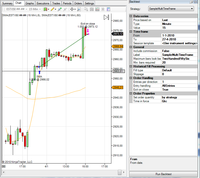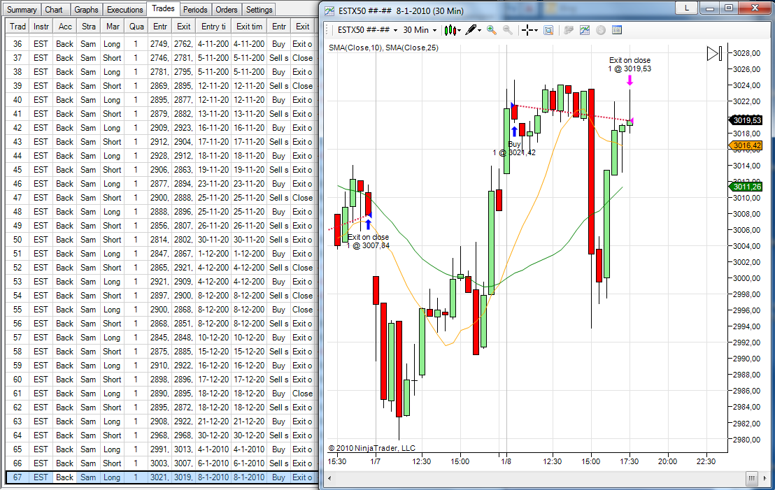 This happens with my own written strategies as well as with the "SampleMultiTimeFrame" and "SampleMACrossOver" examples included in NinjaTrader.