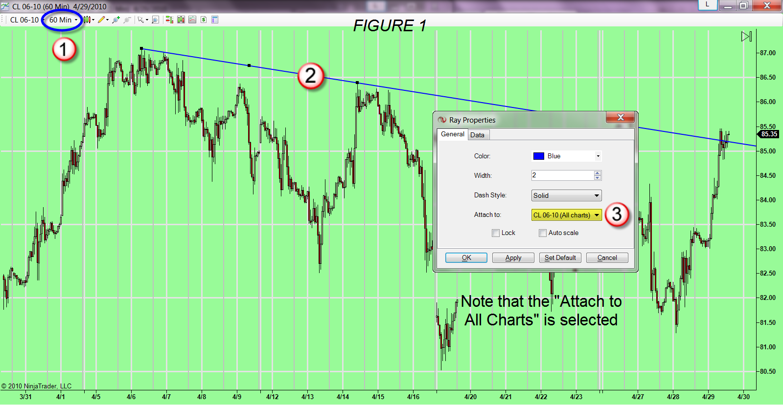 3) Draw a trendline by pressing F3, extending out from 04/06 to 04/14, as shown in Figure 1 (see the attachment)