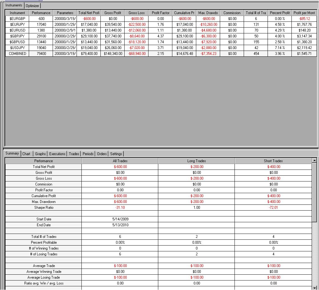 I like the new combined results feature, but after optimizing on multiple securities, some of the calcs in the combined results line appear to be wrong. For example the Profit per month result appears to be an average, instead of a sum. Also the Cumulative Profit seems to have the same problem. I have not checked all of them tho.