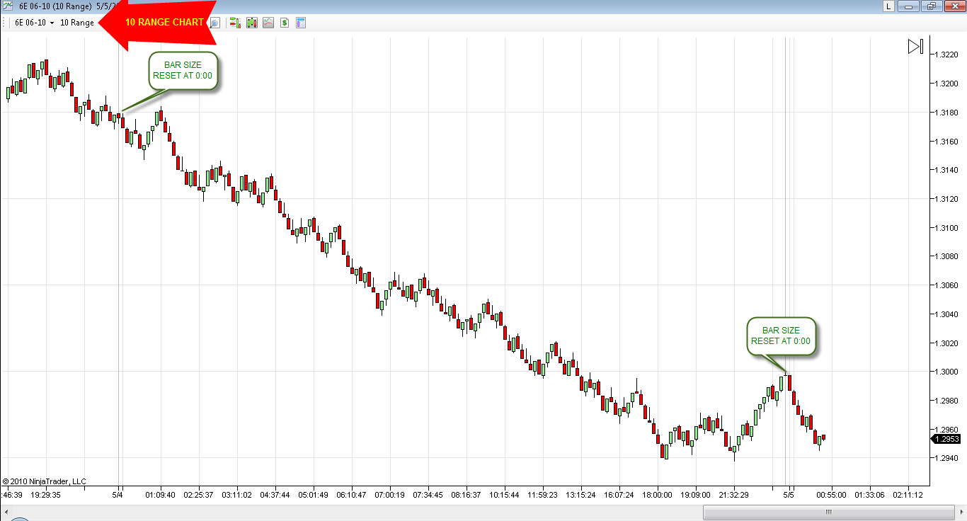 Thanks, but using your method the maximum I can go without resetting the bars will be 7 days ...... I want to be able to open a range chart with 20 days of data (for example) and have no bar resets in that time period ..... so, I tried creating an empty session template without start and end day/time values but it looks like the program defaults to nightly resets..........