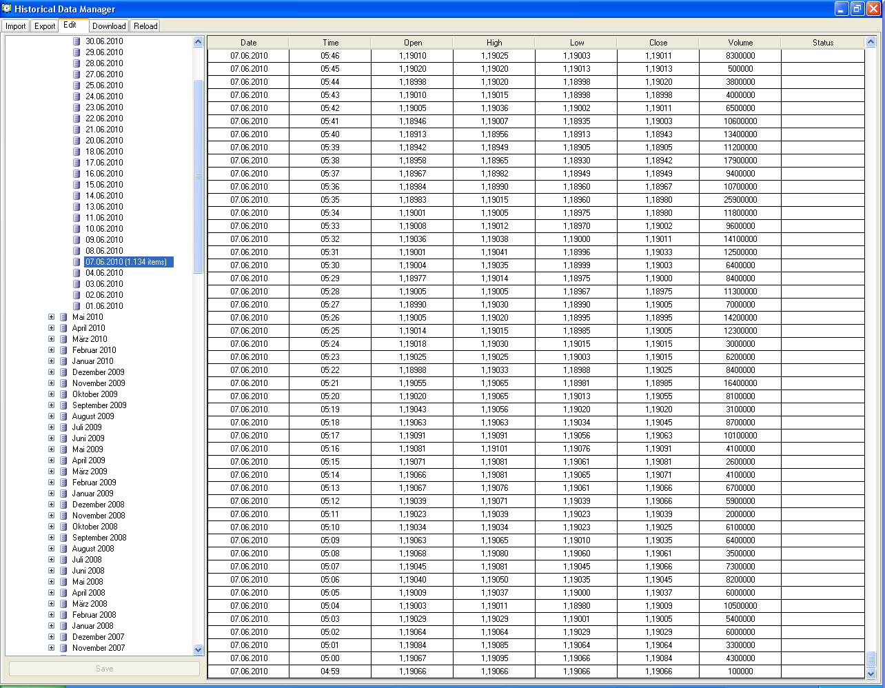 Just noticed that there is no FOREX data available between Sunday June 6, 11:00 PM and Monday June 7, 5:00 AM CET (in Eastern Time it would be Sunday June 6, 5:00 PM to 11:00 PM).