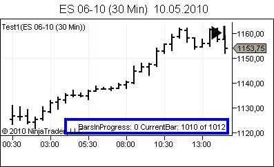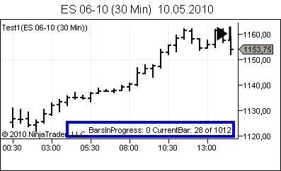 - I apply an indicator to the chart and click OK. NT passes through all bars and finishes at CurrentBar == 199 (we have 200 bars available).