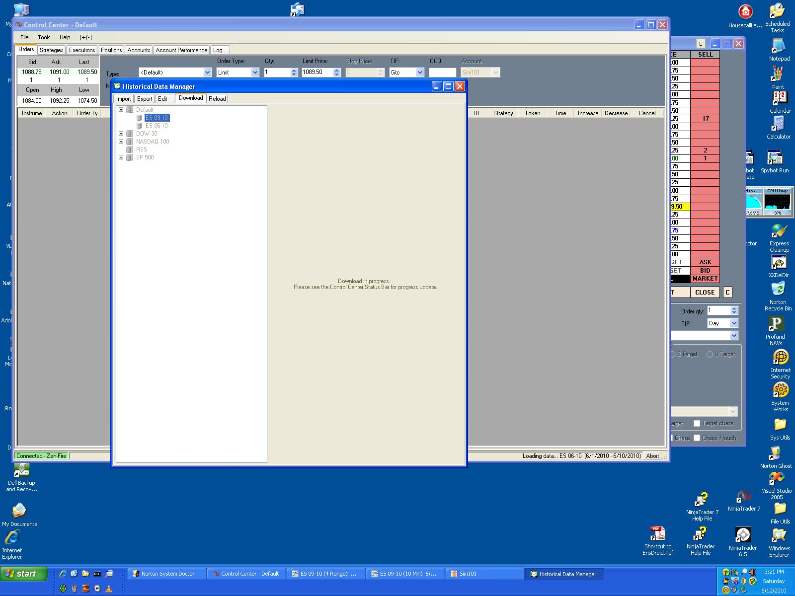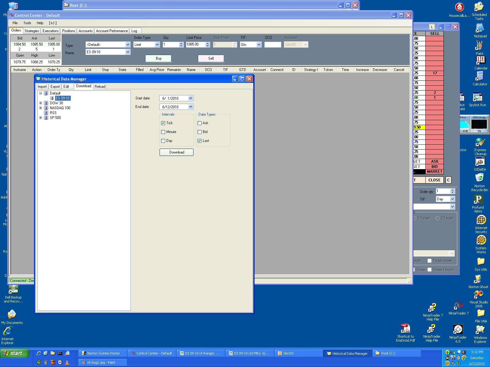 I Removed ES 06-10 from my list using the Instrument Manager so ONLY the ES 09-10 would show. See the NT-Bug3.Jpg file. And requested 6/1 thru 6/12.