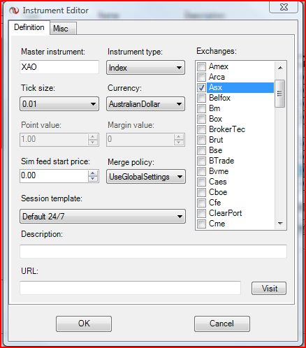 The other thing to report is when Importing a brand new list successfully, and choose the correct settings for currency, exchange and session template (which you may have made a ASX session template with the correct times) and you then go to the instrument manager, and choose to click and view or Edit the stock, it then chooses or displays the Wrong Session Template, as well as the default still being ticked, which to me is a bug or is wrong, it should have displayed properties of what I imported the list set to, not defaults.