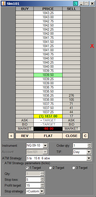 Also...if you then close out the trade before closing the check mark box on the target...the check mark box remains showing in the DOM...screen shot 2 below...then if you close the check mark box there is still a red X showing in the DOM....screen shot 3 below...
