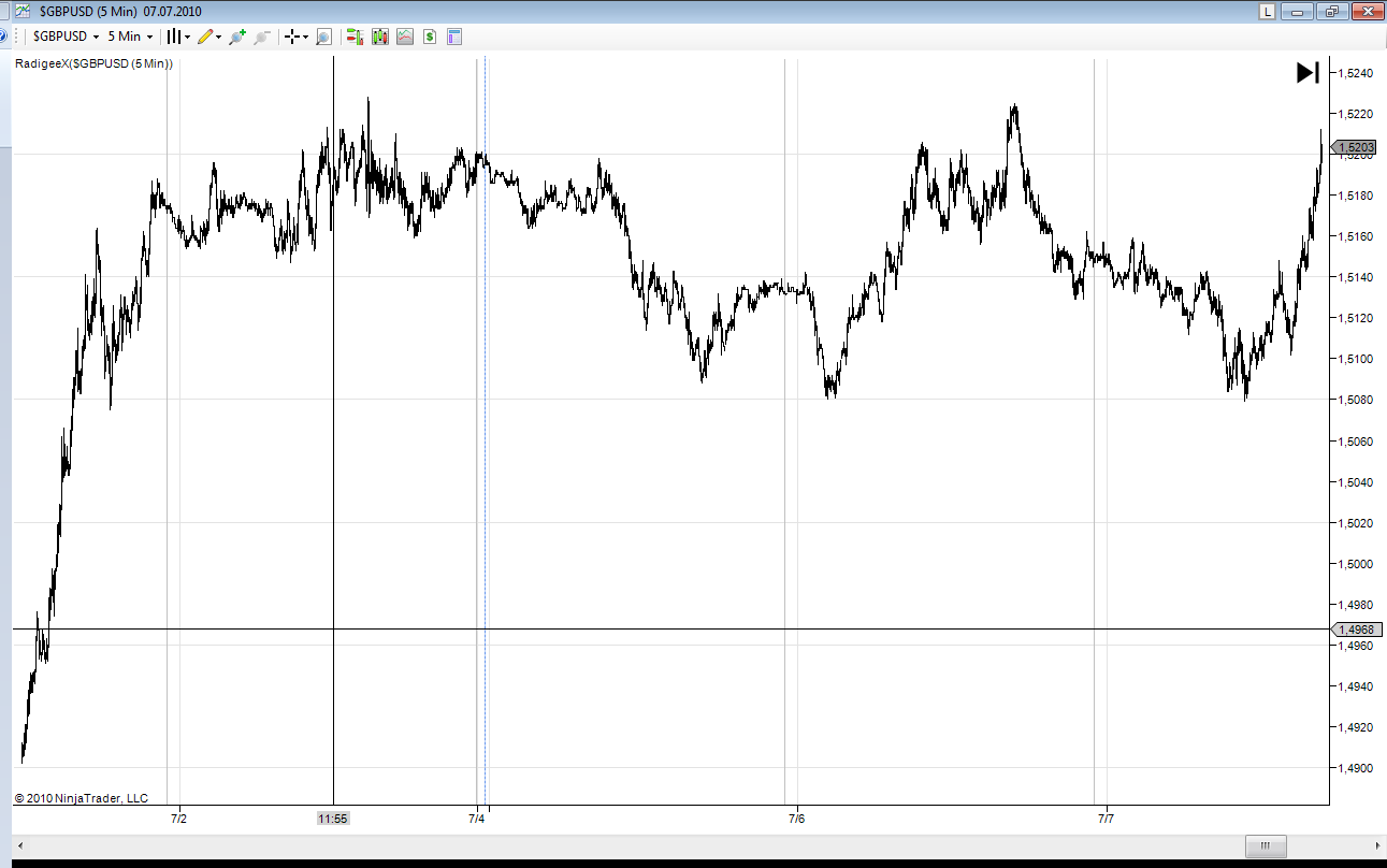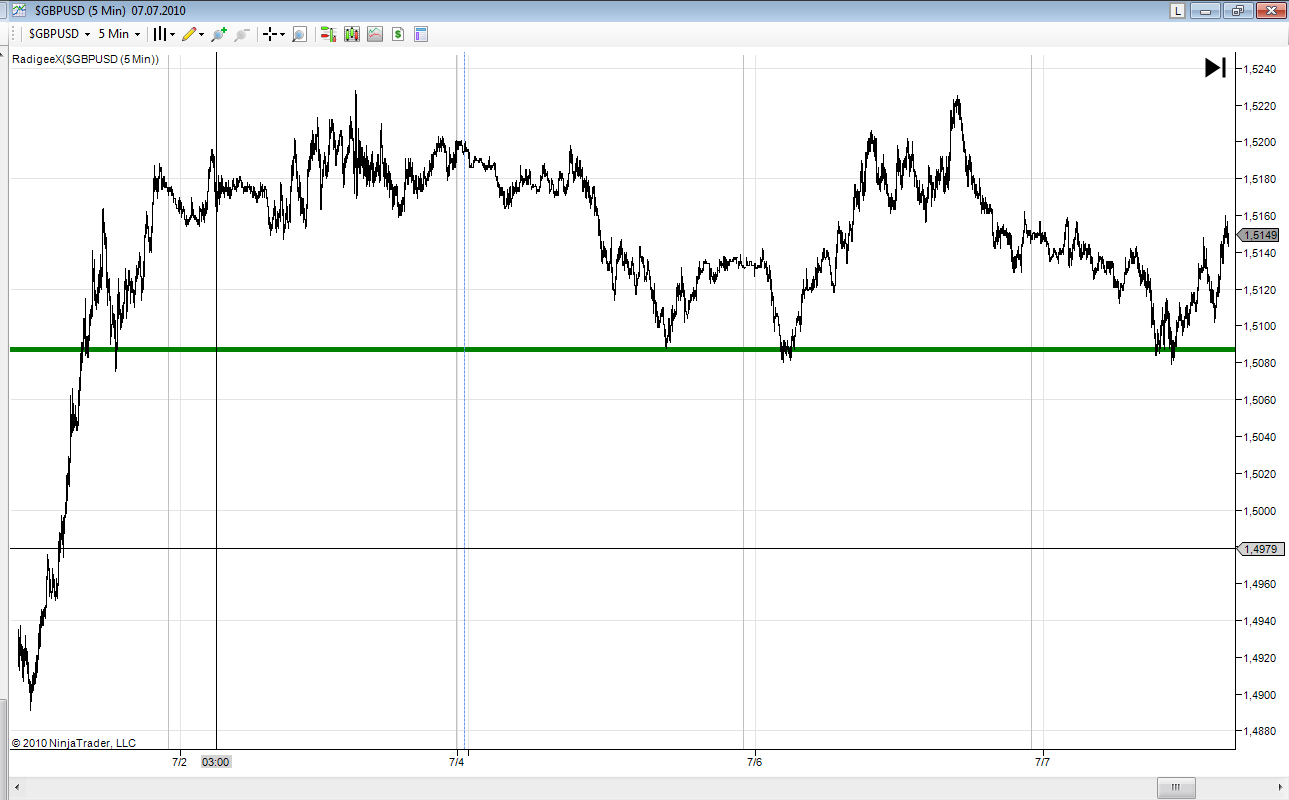 This works fine on higher time frames, but on lower time frames (like 5 minutes) Ninja Trader sometimes forgets to draw these lines when scrolling on the time axis.