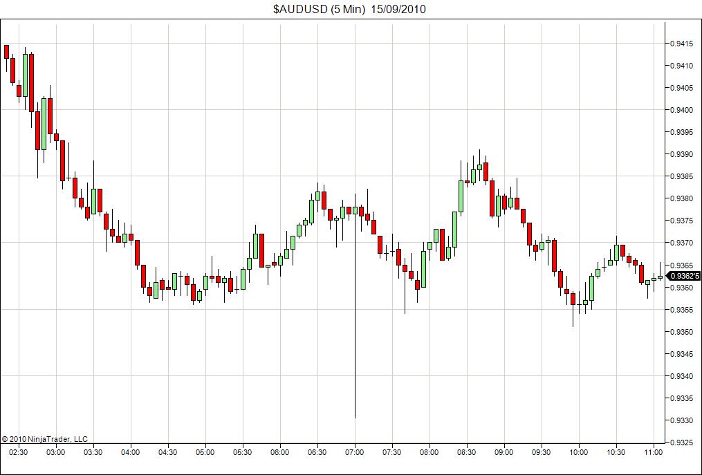 I had run NT for roughly 18 hours already, and at 18:00 last night, for an hour or more I had not looked at the chart and I switched to it. It was a 5 min chart and when the next bar started as I watched, the price gapped upwards. I thought that was quite bizarre for mid-session and considering the relatively low volatility, and then I saw the times of the bars jumped 50 mins and the chart had just skipped about 10 bars. This was the same across all forex pairs in my default lists, which I cycled through to check.