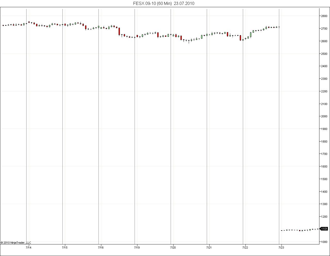 Shown below five screenshots, as I am not allowed About half of my futures contracts are completely messed up. The charts display exactly, what I found in the database.