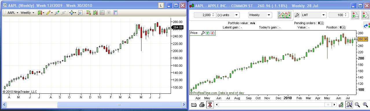 The two ProRealTime charts match and have been manually checked.