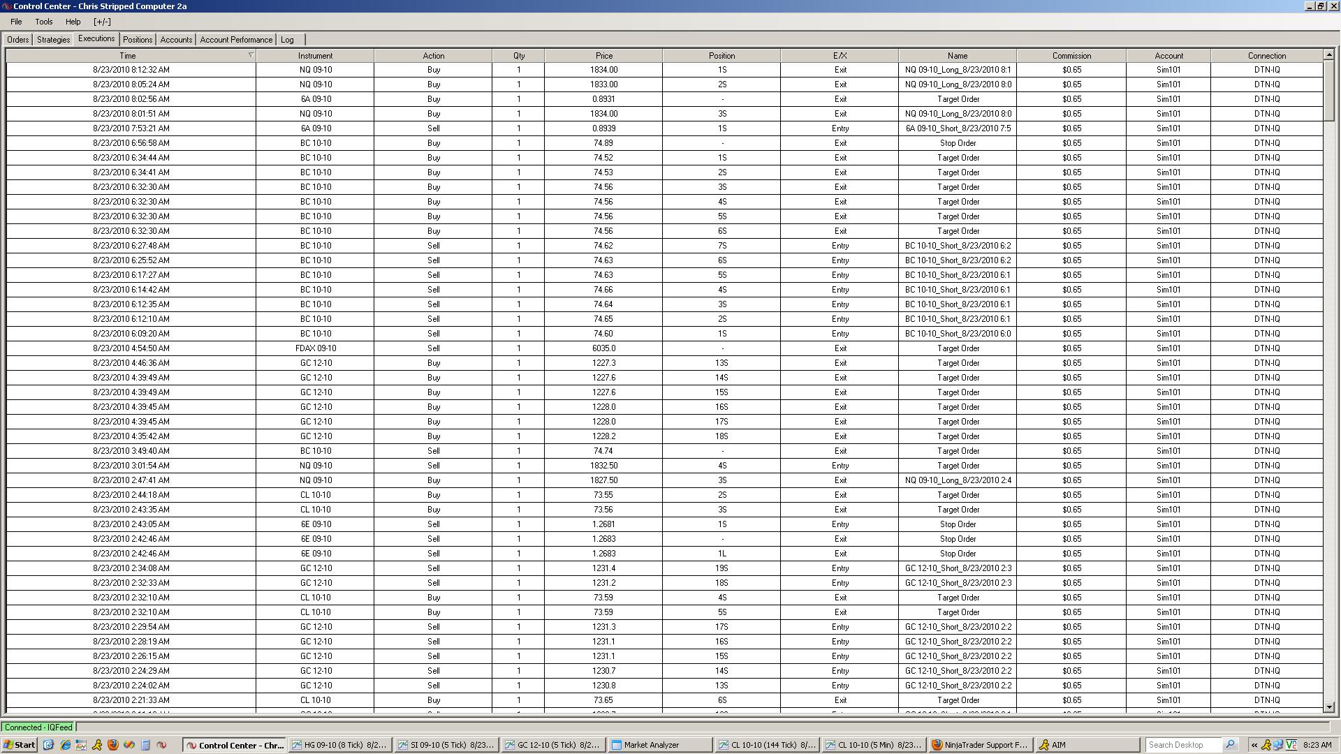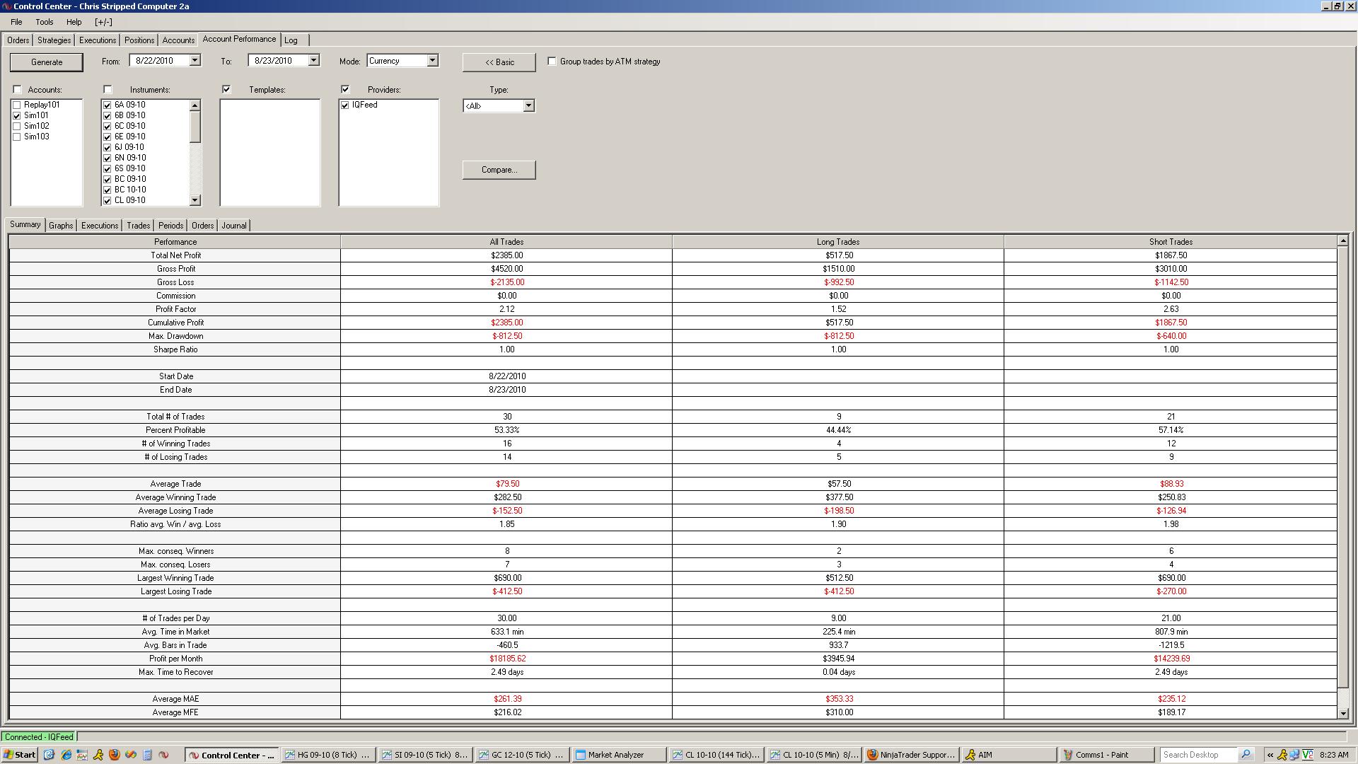Have added commssions at Tools > Options > Commission > Currency - IQ Feed $2.85 min; 0/0