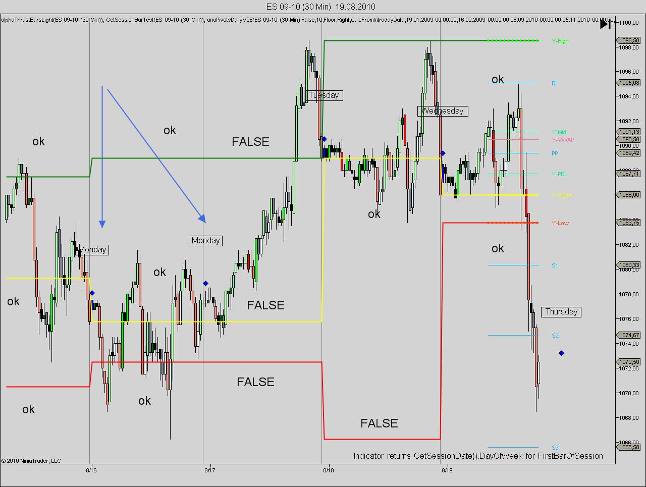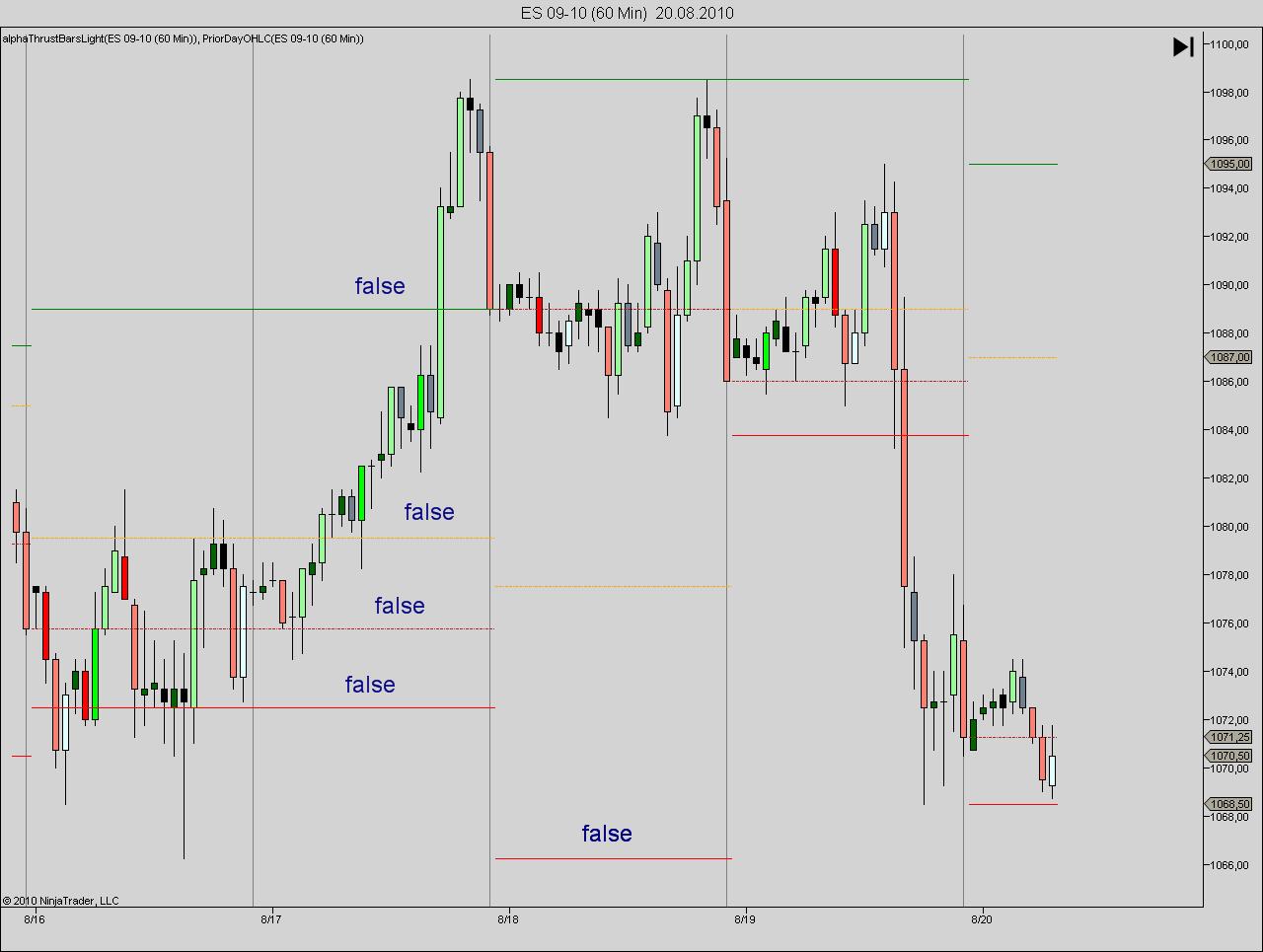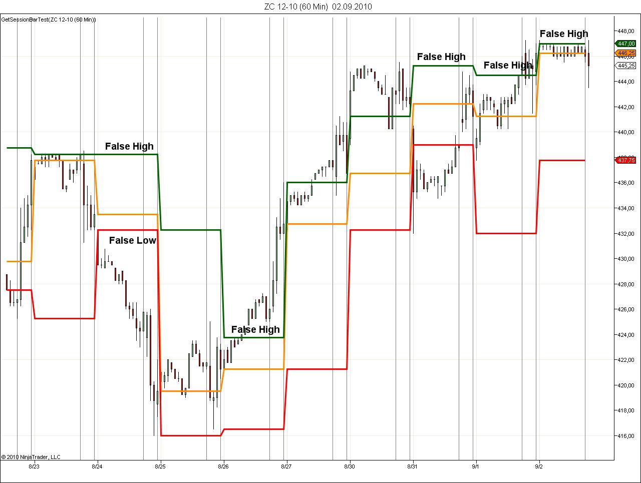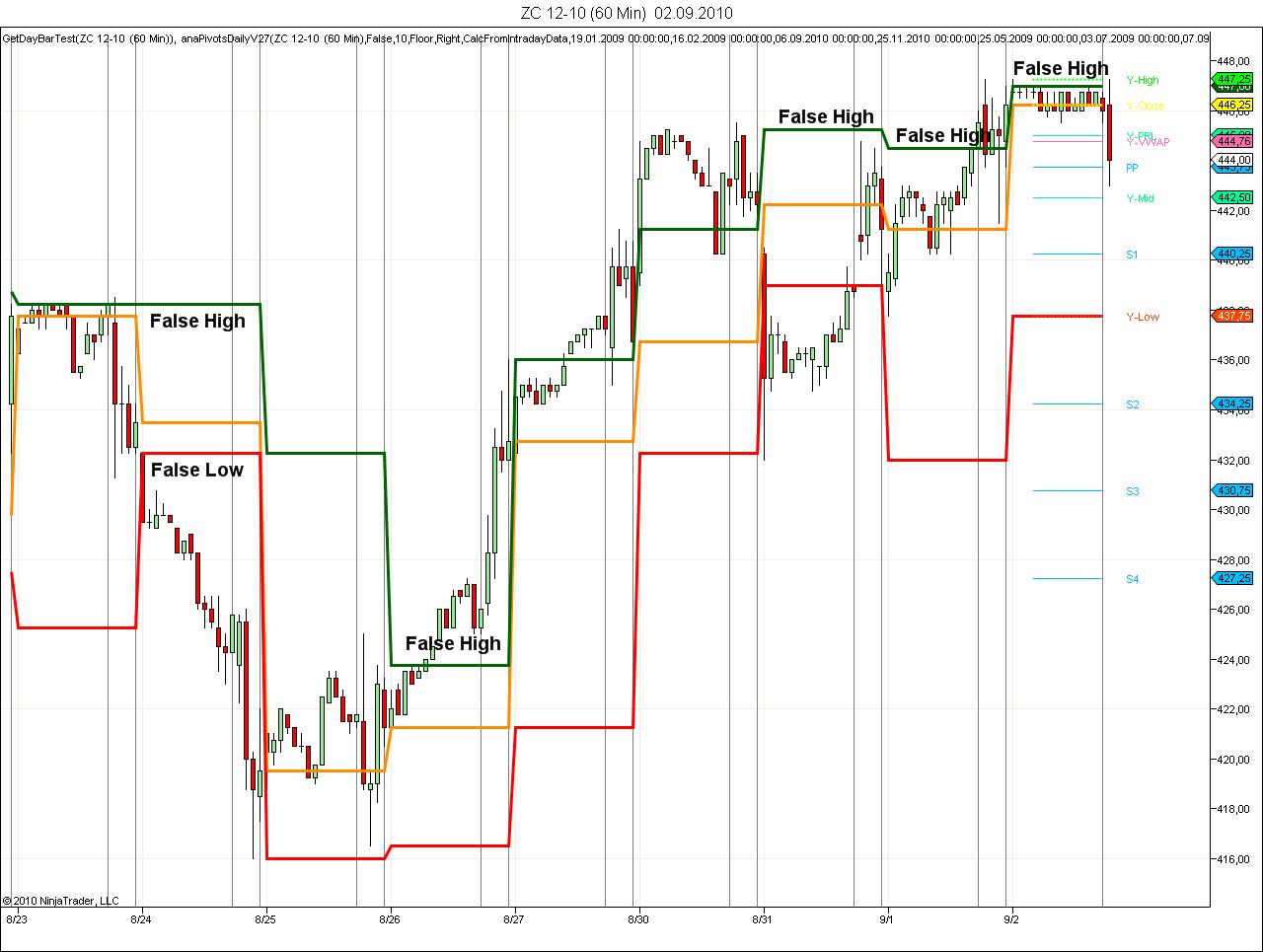 Below attached an indicator and a chart of ZC (corn futures) that shows false highs and lows for the prior day.