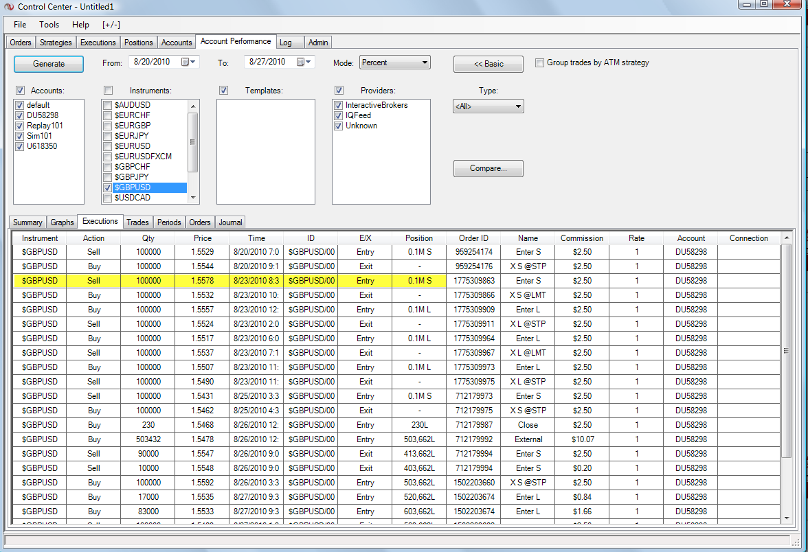 I've attached a screenshot of one strategies trades and it looks as if NT has confused the entries and exits. It shows more than 1 simultaneous trades and my strategies are all set to trade only one lot at a time.
