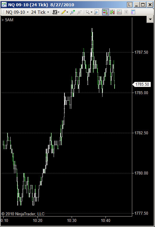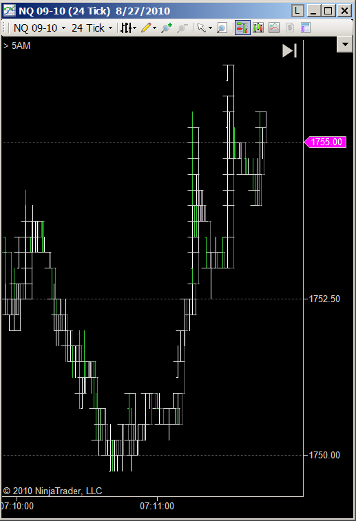 Scrolling back on say a 3 seconds NQ chart the bars look similar all through the chart for today....only the tick chart looks haywire for a period of time early in the day....any ideas on this ??...