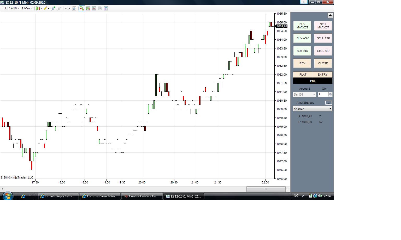 Attached is a 1-minute chart of the ES contract. The 5-minute chart looks similar, with many "flat" candles.