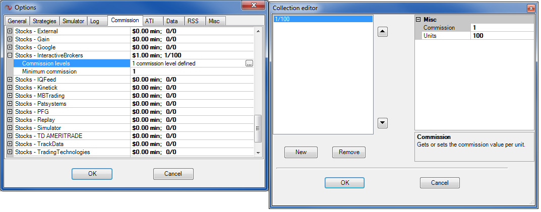 If so, can you tell me which commission settings are in place for Stocks - SimulatorKyleNinjaTrader Customer Service
