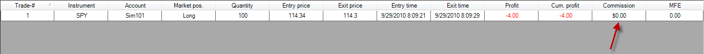 Basically, I set NT to do $1 commission for 100 shares of SPY. When I would enter a trade long or short SPY, the pNL would immediately show -1 point. I.e. $100 loss. Now of course this was incorrect but it for some reason added -1 pt loss to the trade instead of - $1 for commission as it should have. Once trade closed everything was fine, the entry price and exit were correct but while in the trade the pnL calculations were incorrect by -1 pt.