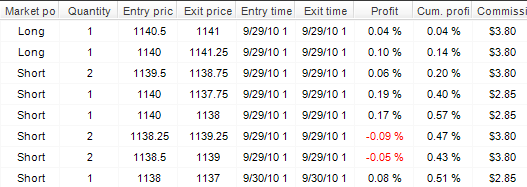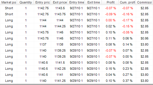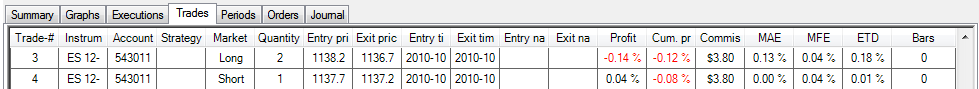 BTW, and importantly, the same philosophical problem pops up at the very start, for it is impossible to define a correctly tiered commission structure for futures. Presently, NT can only think in tiered commission levels for stock trades, where per trade commissions may change based on the unit size of the trade. Well, in futures, there are no per trade charges, but per unit commissions, which are fixed. Moreover, in most cases the per unit commission decreases with the total number of units traded during the current month (i.e. my per unit ES commission drops to $3.6 RT, once I have traded 10000 units in the current month). This is impossible to set up in NT currently.