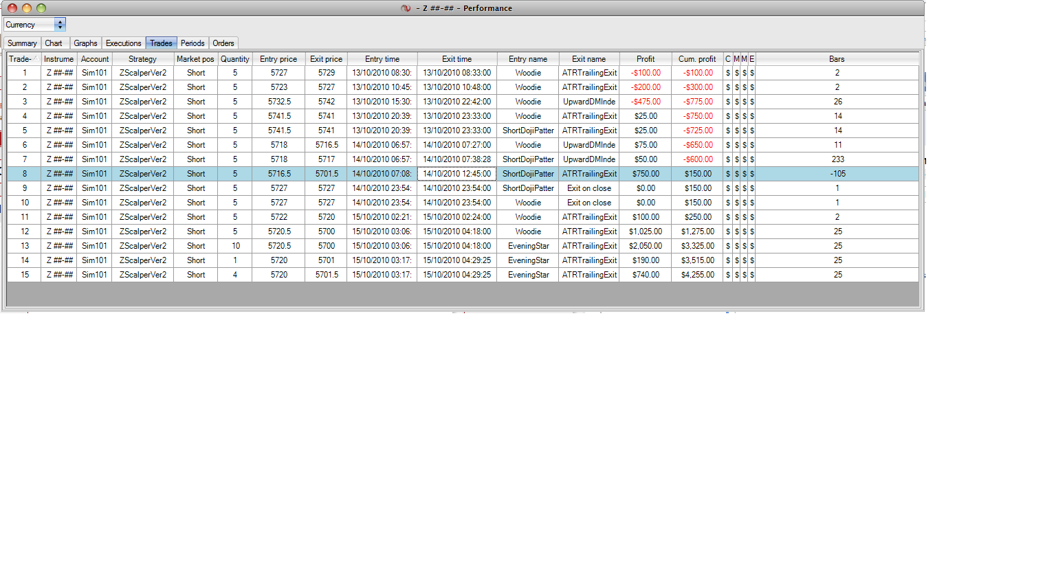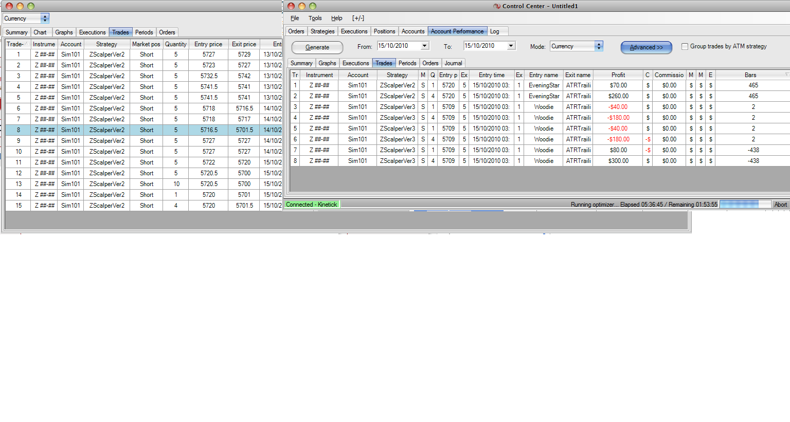 Also, there are some entries in the Bars column of both reports which are negative. Would that probably be due to some interruption such as closing NT7?
