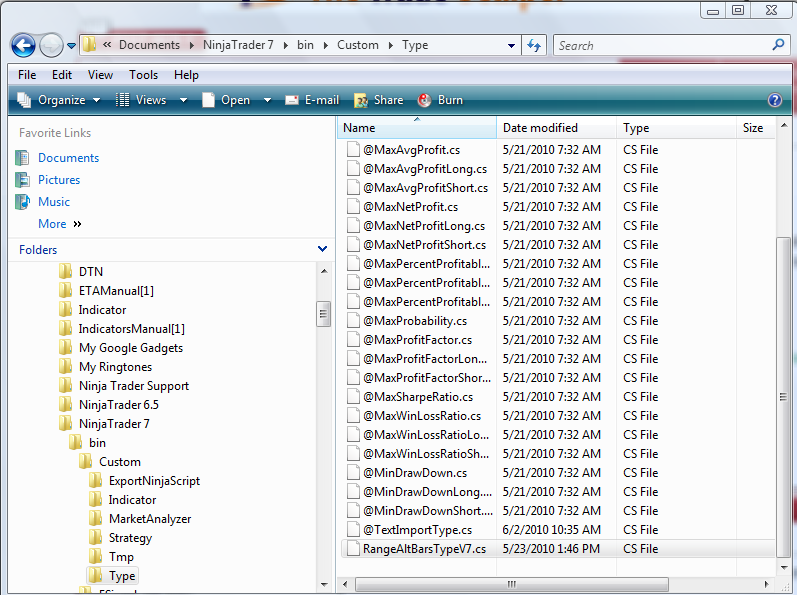 Copy this file to NinjaTrader 7\bin\Custom\Type. (See attached thumbnail)Originally posted by rokafella View PostThere is an implementation of alt range bars for 6.5. Will it become available for 7?