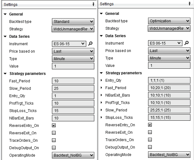 Not a critical issue. The sequence of parameters listed in the Strategy Analyzer under Backtest type: Standard is sorted as specified in the Display(Order=) argument of the strategy parameter property. However, when the Backtest type is changed to any one of the optimization selections, the parameter sequence changes to an alpha sort. For the sake of consistency, would prefer the former for all Backtest type selections.Tags: None