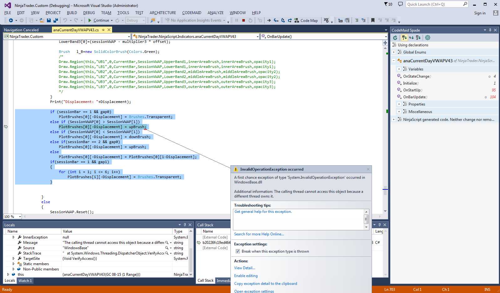 at NinjaTrader.NinjaScript.Indicators.anaCurrentDayVW APV43.OnBarUpdate() in c:\Users\Greg\Documents\NinjaTrader 8\bin\Custom\Indicators\anaCurrentDayVWAPV43.cs:li ne 706
