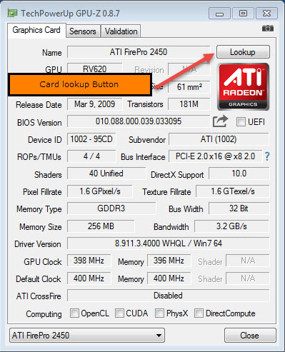 And with the GPU info display, there is a "Lookup" button that takes you to a page that display your video card and a good description of it.